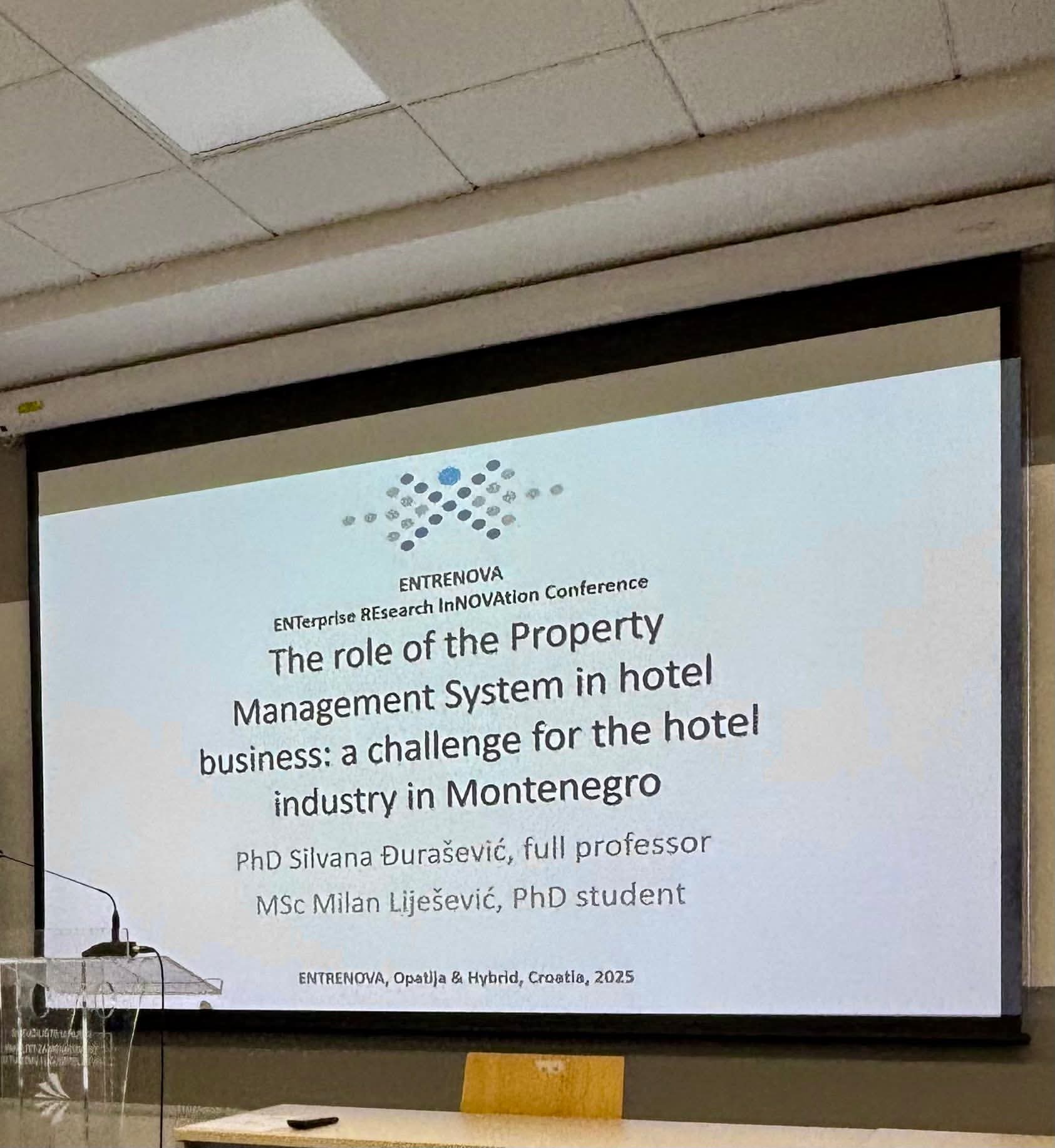 U okviru konferencije “ENTRENOVA-11th ENTerprise REsearch InNOVAtion Conference 2025” održane na Fakultetu za turizam i menadžment u hotelijerstvu u Opatiji, u Hrvatskoj, titulu najboljeg rada, odnio je rad prof. dr Silvane Đurašević i kolege, doktoranda na Fakultetu za turizam (MTS), Milana Liješevića.