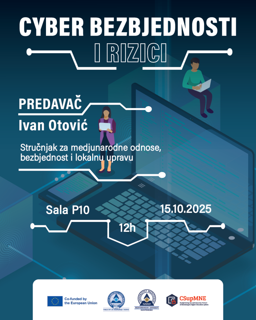 Predavanje se realizuje u okviru CSupMNE projekta (Strengthening Up Cybersecurity Posture of Montenegrin Higher Education System), koji ima za cilj unapređenje sajber bezbjednosti u visokom obrazovanju Crne Gore kroz jačanje kapaciteta za procjenu, zaštitu i upravljanje digitalnim prijetnjama.