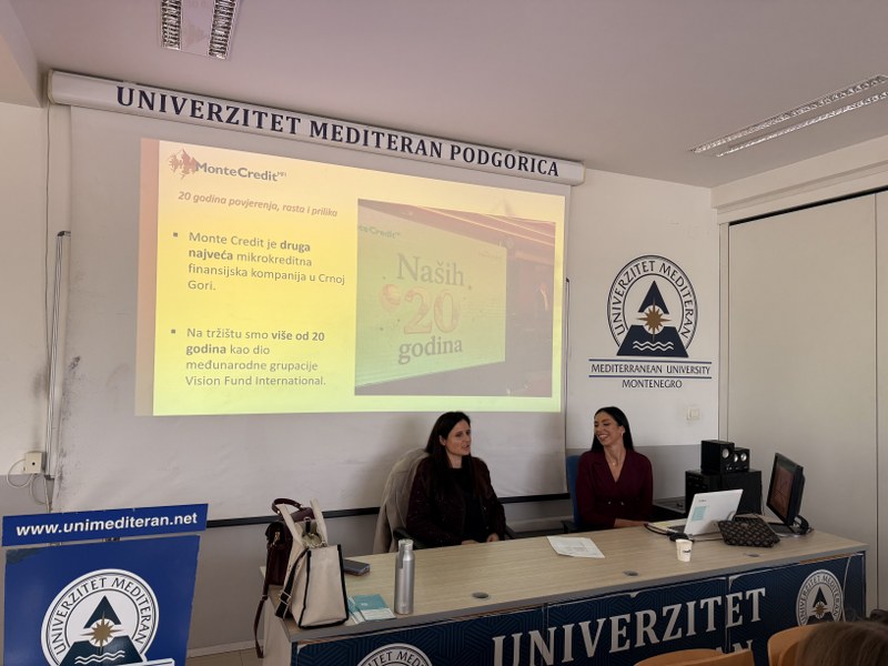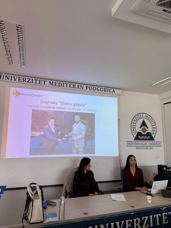 Studenti Fakulteta za ekonomiju i biznis Univerziteta Mediteran imali su priliku da se upoznaju sa mogućnostima stručne prakse u kompaniji MonteitCredit, koja već dvije decenije uspješno posluje na tržištu i prepoznata je po podršci koju pruža mladim, ambicioznim ljudima.