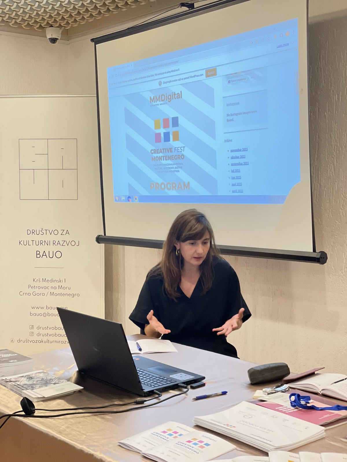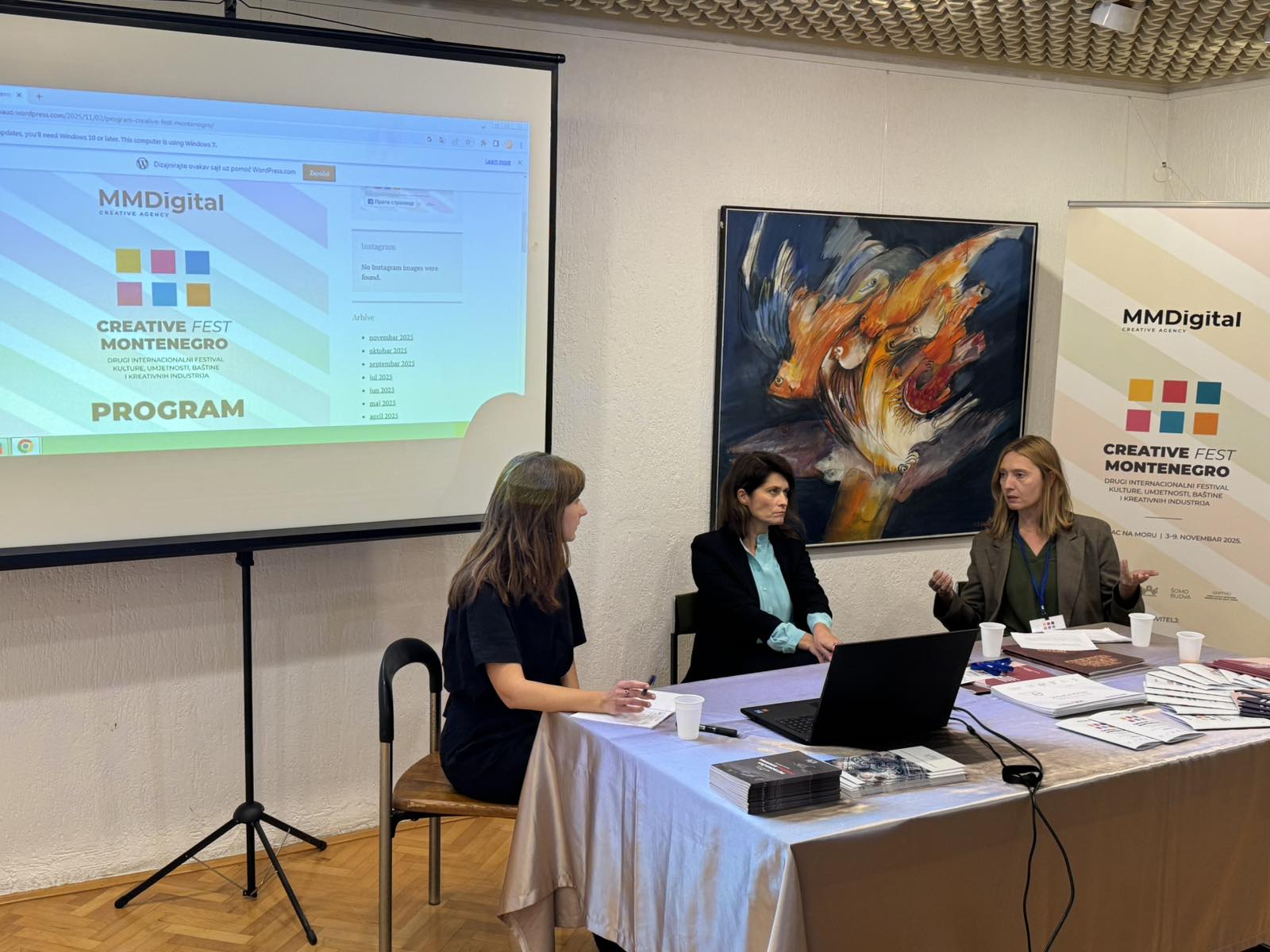 Nataša Kraljević, predavač na Fakultetu vizuelnih umjetnosti i istraživačica ISCA – Instituta za nauku kulturu i umjetnost Univerzieta “Mediteran” Podgorica moderirala je i koncipirala panel pod nazivom “Kulturne politika, liderstvo, upravljanje – paralelne realnosti i pristupi” u okviru drugog internacionalnog festivala kulture, umjetnosti, baštine i kreativnih industrija “Creative Fest Montenegro”, organizovanom u Petrovcu od 3 do 9. novembra 2025.godine.