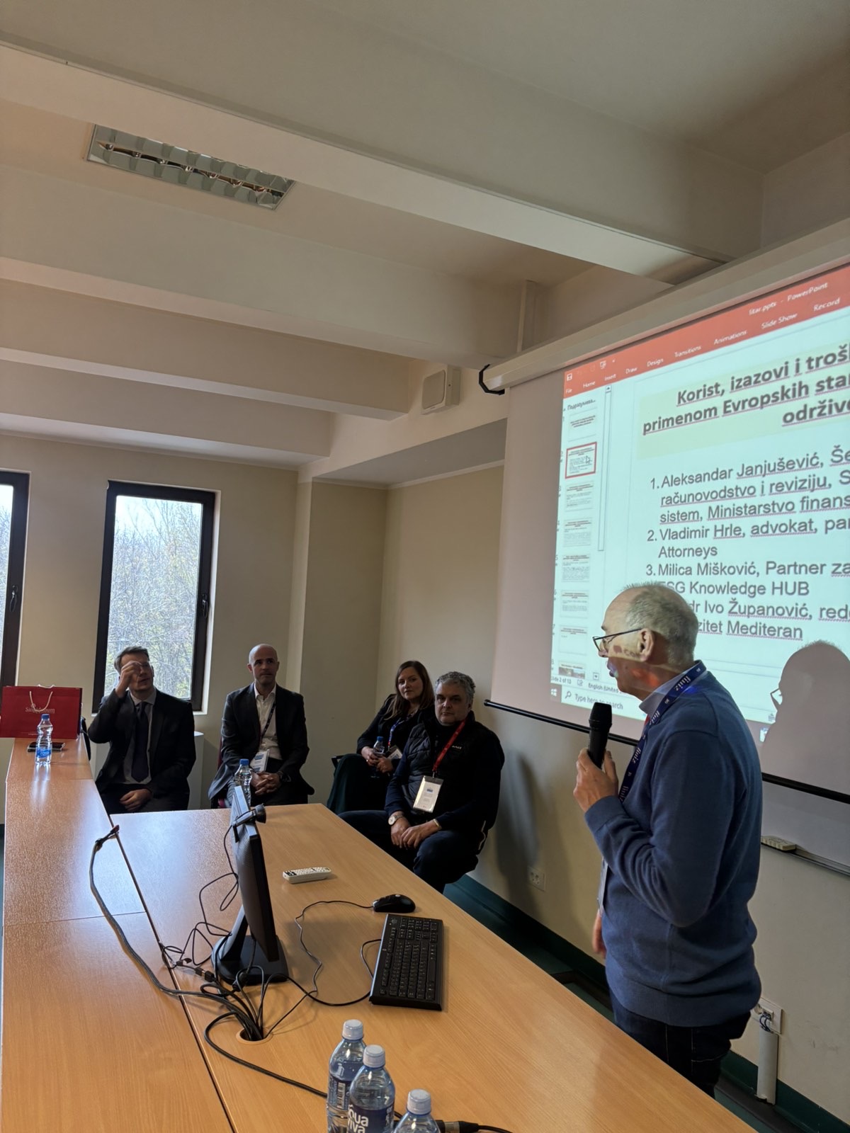 Kao panelista u sesiji Finansijsko izveštavanje, diskutovao je o koristima, izazovima i troškovima izveštavanja primenom Evropskih standarda izveštavanja o održivosti.