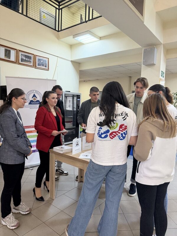 Predstavnici Univerziteta Mediteran realizovali su danas posjetu Srednjoj ekonomskoj školi „Mirko Vešović“ u Podgorici, gdje su učenicima završnih razreda predstavili osnovne informacije o upisu i studijskim programima Fakulteta za ekonomiju i biznis.